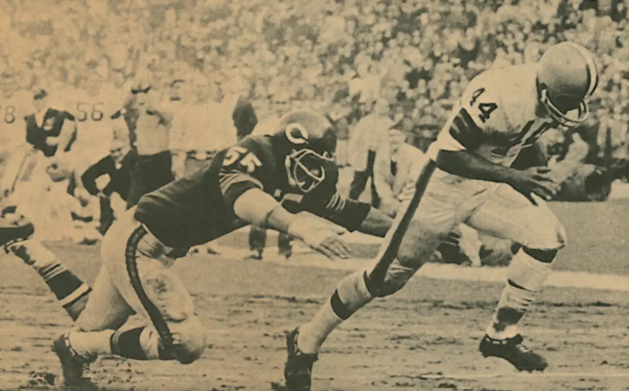 Maxie Baughan and crew bring down the Browns great runner Jim Brown in 1964
