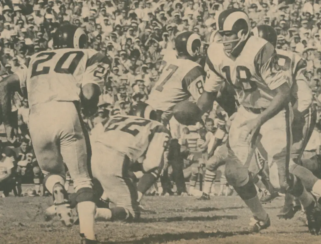Dick Bass was a standout fullback for the Los Angeles Rams from 1960 to 1969, establishing himself as one of the era’s most reliable and productive running backs. Nicknamed “The Scooter,” Bass was selected as the second overall pick in the 1959 NFL draft after a stellar college career at the University of the Pacific, where he led the nation in rushing with 1,361 yards in 1958. Throughout his decade-long NFL career, Bass rushed for 5,417 yards and scored 42 touchdowns while leading the Rams in rushing four times. He left the NFL in 1969 as the Rams All-Time Leading Rusher and stills ranks #5 on that list today.